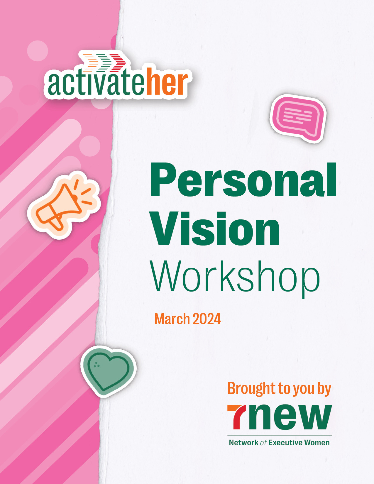 Workbook and presentation deck for simultaneous use during the ActivateHER Personal Vision workshop. The workshop is sponsored by the 7-Eleven Network of Executive Women.