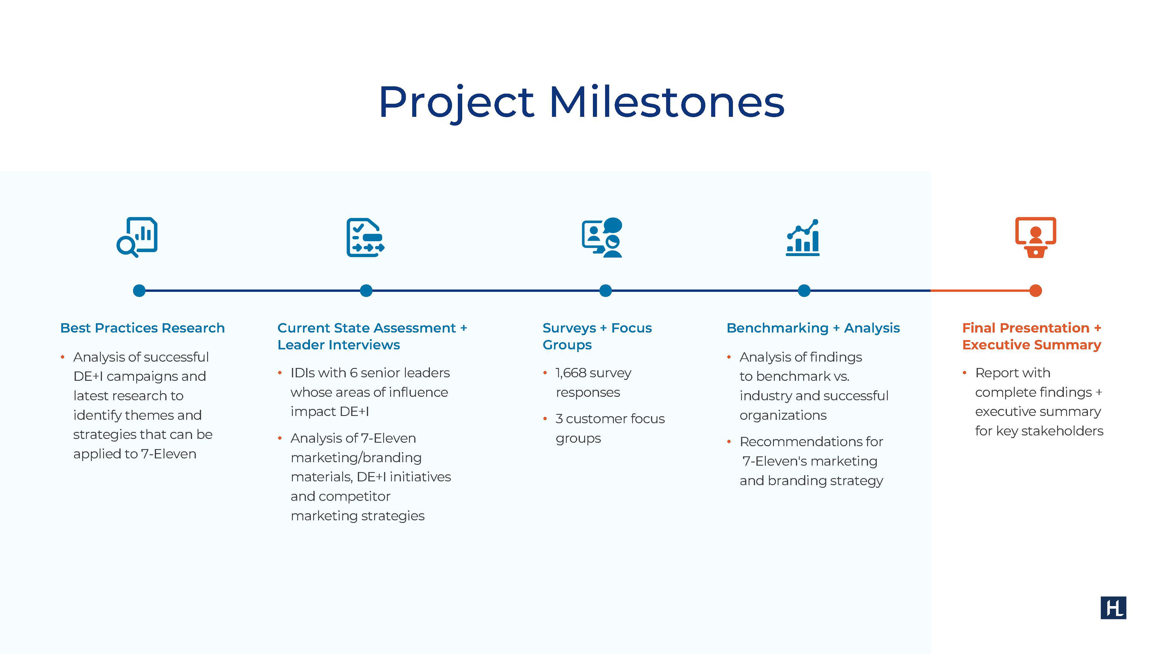 Slide deck designed for 7-Eleven's diversity marketing and inclusion benchmark audit, presented through HudsonLake B2B firm.